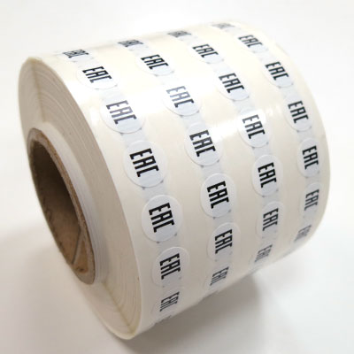 Размещать наклейки с таким знаком на своей продукции имеют право только изготовители, получившие так называемую "Декларацию соответствия". Сам знак "EAC" был разработан российским дизайнером Максимом Десятых и вошел в обращение в 2013 г. Согласно требованиям к знаку, он должен быть прямоугольной формы, причем ширина всех трёх букв должна равняться высоте каждой из них. Исходя из этого требования, был применен шрифт, содержащий узкие буквы с прямыми углами. Для того, чтобы знак был легко различим на любом цветном материале, регламентировано два цветовых решения наклеек: чёрные буквы на белом (светлом) фоне или белые буквы на чёрном фоне.