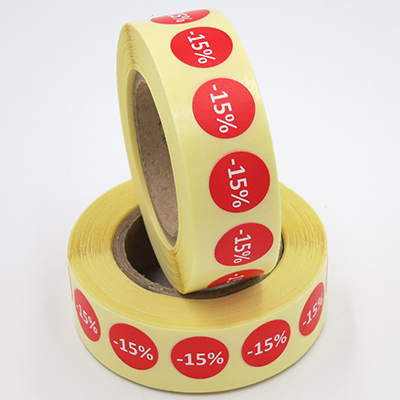 Наклейка " - 15% " отпечатана на высококачественной самоклеящейся бумаге FASSON на самом современном оборудовании, установленном в нашей типографии. Подобные наклейки сохраняют свои клеящие свойства в течение длительного времени. Производитель материала гарантирует срок службы - как минимум два года. Поэтому вы всегда сможете использовать безбоязненно оставшиеся наклейки на следующий сезон.