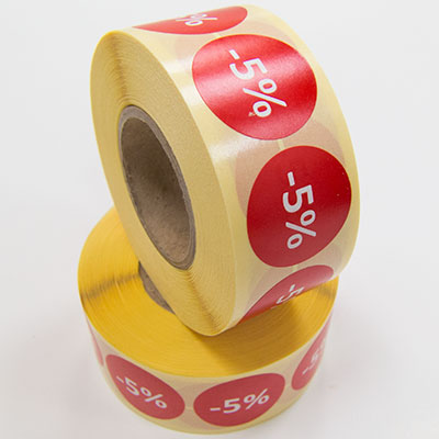 Наклейка " - 5% " отпечатана на высококачественной самоклеящейся бумаге FASSON на самом современном оборудовании, установленном в нашей типографии. Подобные наклейки сохраняют свои клеящие свойства в течение длительного времени. Производитель материала гарантирует срок службы - как минимум два года. Поэтому вы всегда сможете использовать безбоязненно оставшиеся наклейки на следующий сезон.