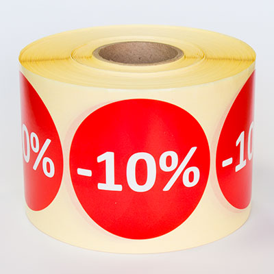 Наклейка " - 10% " отпечатана на высококачественной самоклеящейся бумаге FASSON на самом современном оборудовании, установленном в нашей типографии. Подобные наклейки сохраняют свои клеящие свойства в течение длительного времени. Производитель материала гарантирует срок службы - как минимум два года. Поэтому вы всегда сможете использовать безбоязненно оставшиеся наклейки на следующий сезон.