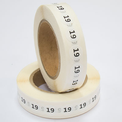 Наклейка размер 19 круглая D 10 мм белая пленка (1 000 шт)