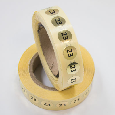 Наклейка размер 23 круглая D 10 мм бумага золото (1 000 шт)