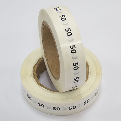 Наклейка размер 50 круглая D 10 мм белая пленка (1 000 шт)
