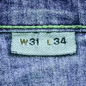 Размеры джинсов принято обозначать буквами W и L (от англ. waist — талия и leg length — длина ноги) с сохранением традиции использования американской меры длины — дюйма (2,54 см).