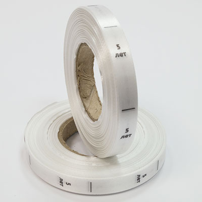 Размерник на белом сатине "5 лет" в рулоне. Намотка - 1 000 штук. Картонная втулка 40 мм.