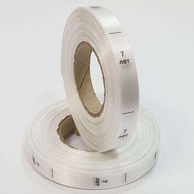 Размерник на белом сатине "7 лет" в рулоне. Намотка - 1 000 штук. Картонная втулка 40 мм.