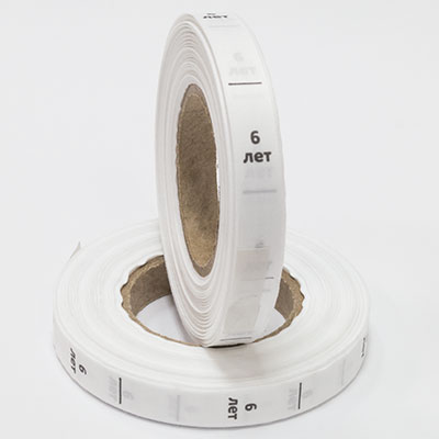 Размерник белой тафте "6 лет" поставляется в рулоне. Намотка - 1 000 штук. Картонная втулка 40 мм.