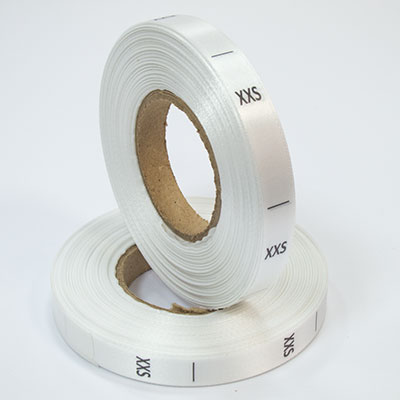 Размерник на белом сатине "XXS" в рулоне. Намотка - 1 000 штук. Картонная втулка 40 мм.
