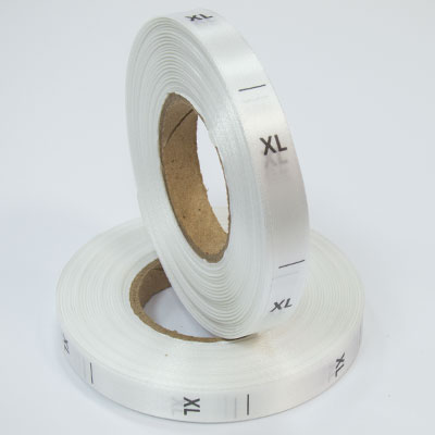 Размерник на белом сатине "XL" в рулоне. Намотка - 1 000 штук. Картонная втулка 40 мм.