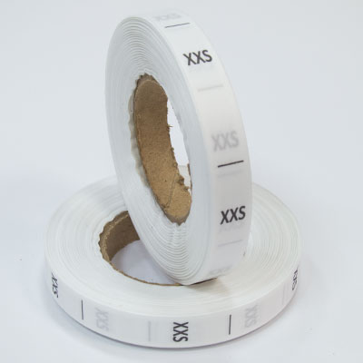 Размерник белой тафте "XXS" поставляется в рулоне. Намотка - 1 000 штук. Картонная втулка 40 мм.