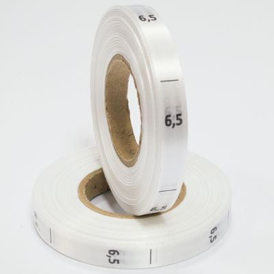 Размерник на белом сатине "6,5" в рулоне. Намотка - 1 000 штук. Картонная втулка 40 мм.