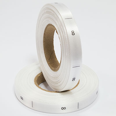Размерник на белом сатине "8" в рулоне. Намотка - 1 000 штук. Картонная втулка 40 мм.