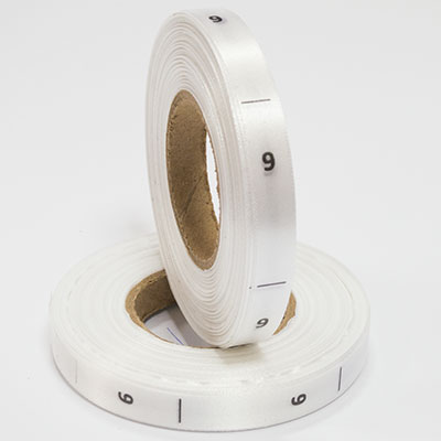 Размерник на белом сатине "9" в рулоне. Намотка - 1 000 штук. Картонная втулка 40 мм.