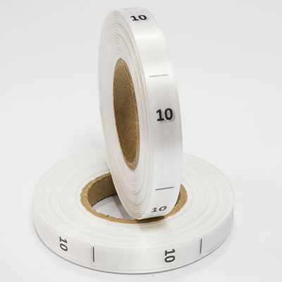 Размерник на белом сатине "10" в рулоне. Намотка - 1 000 штук. Картонная втулка 40 мм.