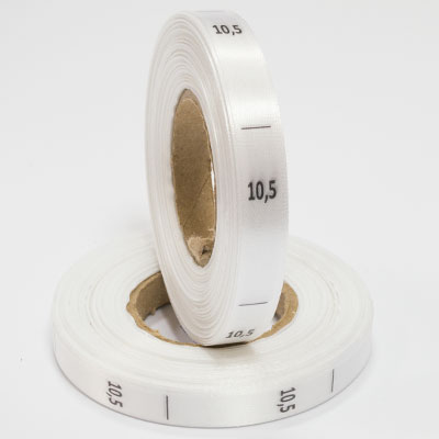 Размерник на белом сатине "10,5" в рулоне. Намотка - 1 000 штук. Картонная втулка 40 мм.