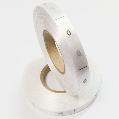 Размерник на белом сатине "0" в рулоне. Намотка - 1 000 штук. Картонная втулка 40 мм.