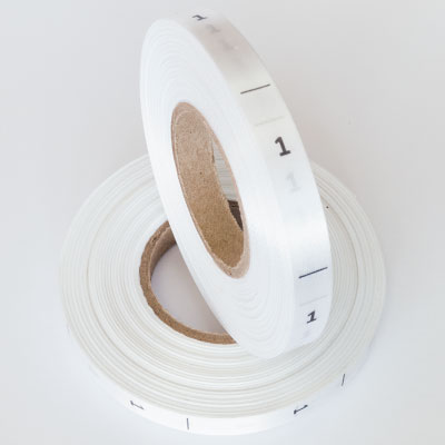Размерник на белом сатине "1" в рулоне. Намотка - 1 000 штук. Картонная втулка 40 мм.
