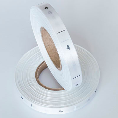Размерник на белом сатине "4" в рулоне. Намотка - 1 000 штук. Картонная втулка 40 мм.