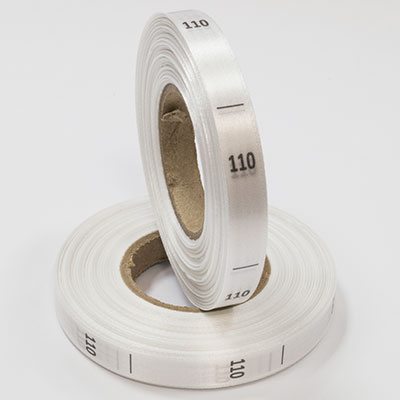 Размерник на белом сатине "110" в рулоне. Намотка - 1 000 штук. Картонная втулка 40 мм.