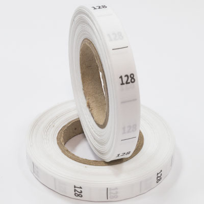 Размерник на белой тафте "128" поставляется в рулоне. Намотка - 1 000 штук. Картонная втулка 40 мм.