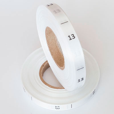 Размерник на белом сатине "13" в рулоне. Намотка - 1 000 штук. Картонная втулка 40 мм.
