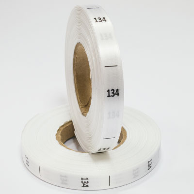 Размерник на белом сатине "134" в рулоне. Намотка - 1 000 штук. Картонная втулка 40 мм.