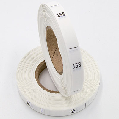 Размерник на белой тафте "158" поставляется в рулоне. Намотка - 1 000 штук. Картонная втулка 40 мм.