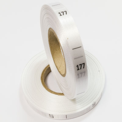 Размерник на белом сатине "177" в рулоне. Намотка - 1 000 штук. Картонная втулка 40 мм.