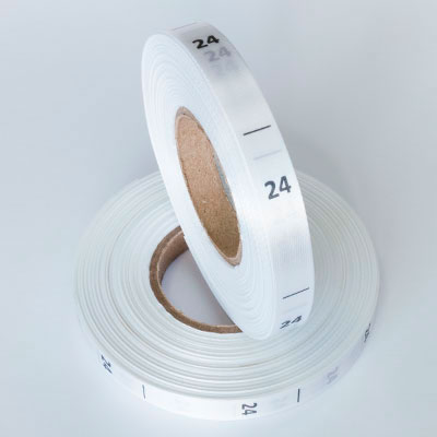 Размерник на белом сатине "24" в рулоне. Намотка - 1 000 штук. Картонная втулка 40 мм.