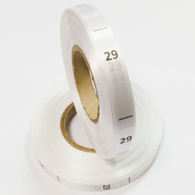 Размерник на белом сатине "29" в рулоне. Намотка - 1 000 штук. Картонная втулка 40 мм.