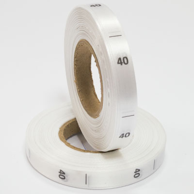 Размерник на белом сатине "40" в рулоне. Намотка - 1 000 штук. Картонная втулка 40 мм.
