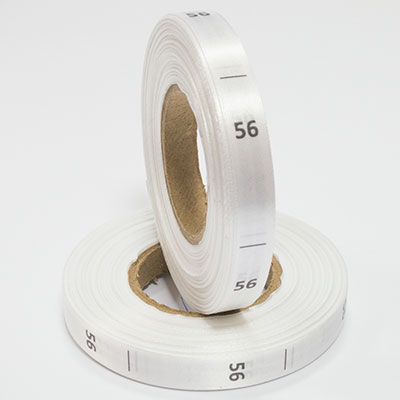Размерник на белом сатине "56" в рулоне. Намотка - 1 000 штук. Картонная втулка 40 мм.