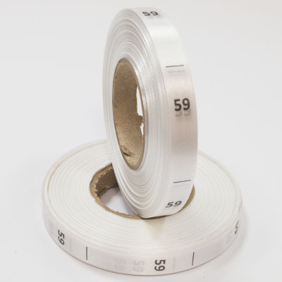 Размерник на белом сатине "59" в рулоне. Намотка - 1 000 штук. Картонная втулка 40 мм.