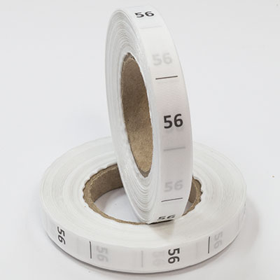 Размерник белой тафте "56" поставляется в рулоне. Намотка - 1 000 штук. Картонная втулка 40 мм.