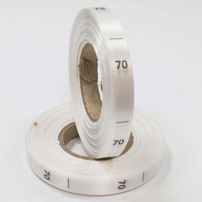 Размерник на белом сатине "70" в рулоне. Намотка - 1 000 штук. Картонная втулка 40 мм.