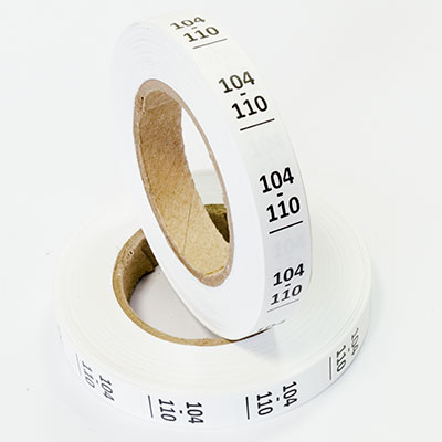 Размерник "104-110" поставляется в рулоне. Намотка - 1 000 штук на картонной втулке 40 мм.