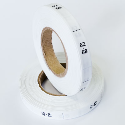 Размерник на белой тафте "62-68" поставляется в рулоне. Намотка - 1 000 штук. Картонная втулка 40 мм.