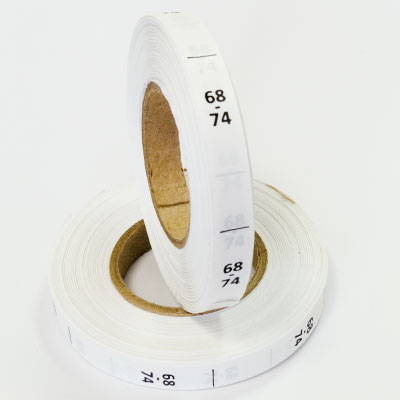 Размерник на белой тафте "68-74" поставляется в рулоне. Намотка - 1 000 штук. Картонная втулка 40 мм.