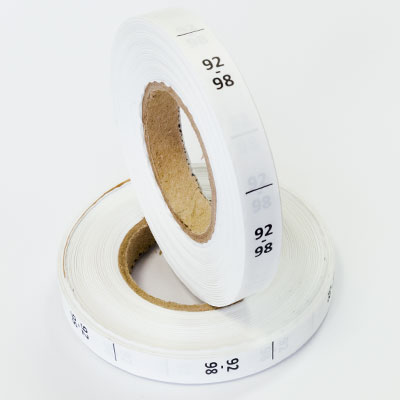 Размерник на белой тафте "92-98" поставляется в рулоне. Намотка - 1 000 штук. Картонная втулка 40 мм.