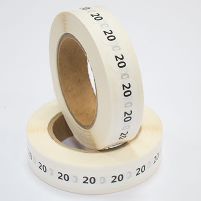 Наклейка размер 20 круглая D 10 мм белая пленка (1 000 шт)